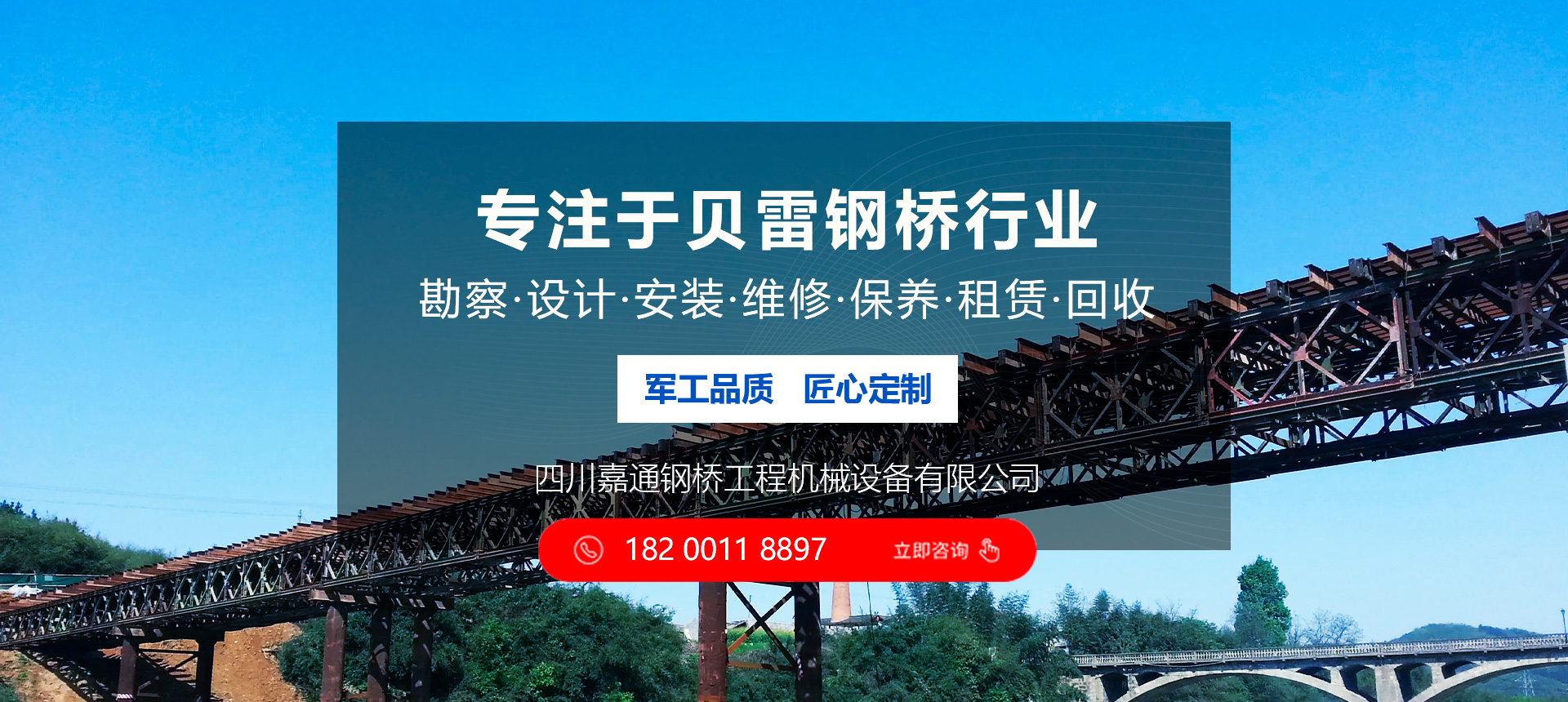 裝配式鋼橋(又稱貝雷鋼橋)有結構簡單、構件輕巧、運輸方便、組合靈活、架設快速、拆裝方便、構件可重復利...